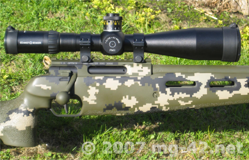 Schmidt & Bender 5-25x56 PMII variable scope mounted on a U.S.