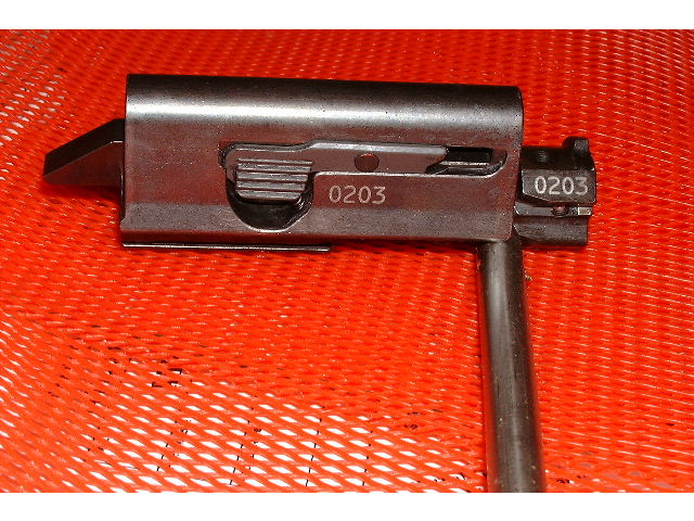 Detail - Bolt carrier with gas piston and recoil spring with guide rod